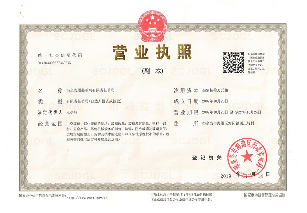 秦皇島耀晶玻璃有限責(zé)任公司,坐落于秦皇島,公司創(chuàng)始于2007年,本著“誠(chéng)實(shí)守信、客戶(hù)至上、品質(zhì)服務(wù)”的原則,取得了長(zhǎng)足穩(wěn)固的發(fā)展。目前擁有專(zhuān)業(yè)化生產(chǎn)基地,占地30余畝,具備獨(dú)立進(jìn)出口權(quán),能滿(mǎn)足客戶(hù)多元化建筑工程玻璃訂制需求。
